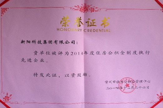 會上,新陽科技集團(tuán)受到表彰,并榮獲“2014年度常州市住房公積金制度執(zhí)行先進(jìn)企業(yè)”榮譽(yù)證書。