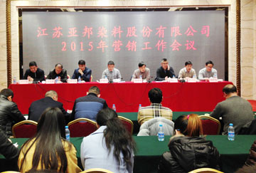 3月6日下午3點30分,亞邦染料股份有限公司2015年度營銷工作會議在金色南都5樓南都軒會議室隆重召開,營銷中心全體人員、應用服務部全體人員,以及生產(chǎn)調(diào)度全體人員參加了會議。